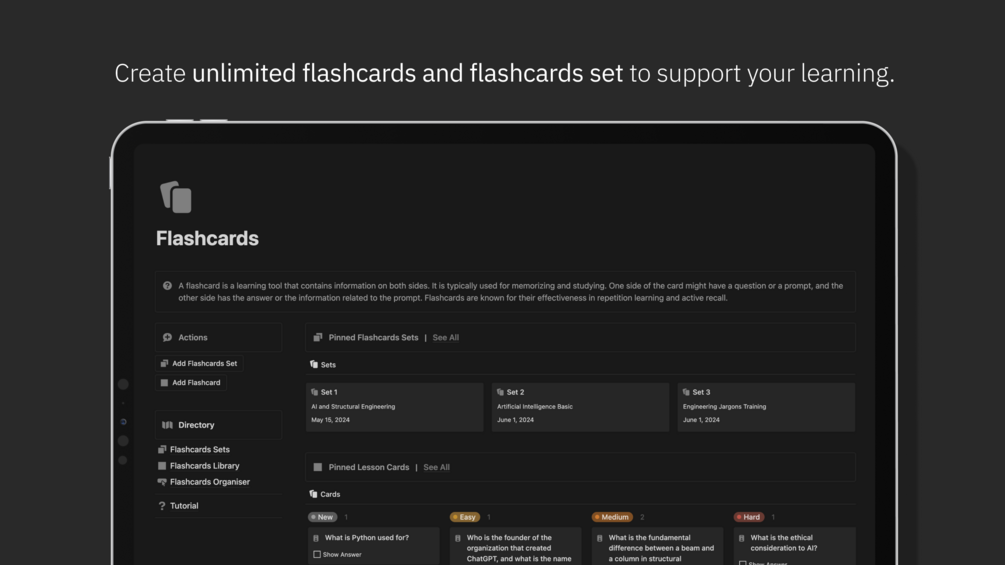 - You have the ability to create unlimited flashcard sets. These can be used at any time, making them a flexible tool for learning and revision.