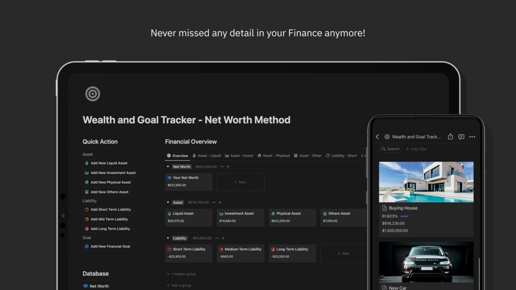 Notion | Goal and Wealth Tracker - Net Worth Method